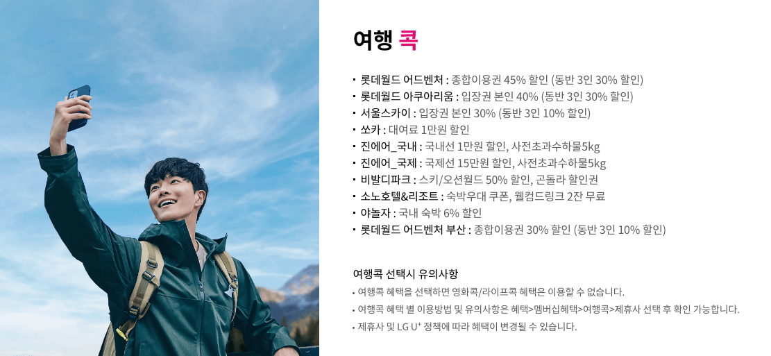 여행이 삶의 낙이신 분들 유플러스 멤버십 혜택 누리셔야겠습니다.