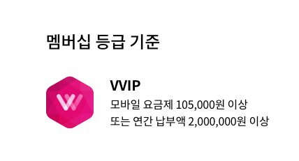 VVIP는 모바일 요금제 105,000원 이상 사용하시거나 연간 납부액 2,000,000원 이상,
