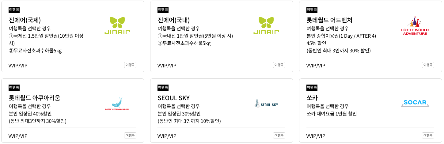 비발디 파크, 소노 호텔&리조트  등의 스키 리조트 등의 할인도 있습니다.