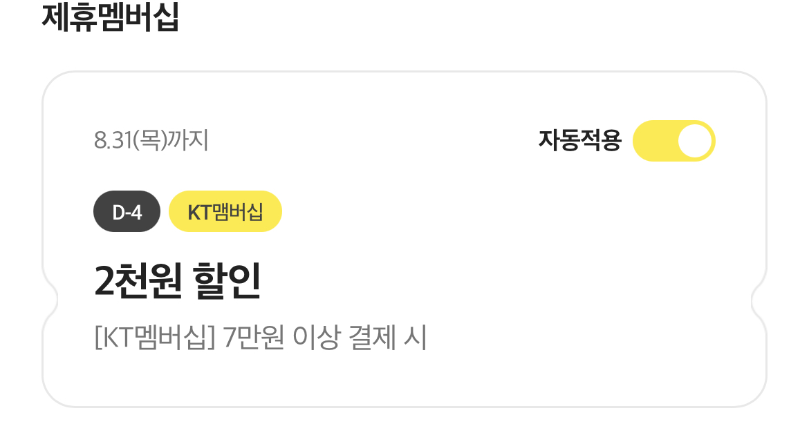 그리고 휴대폰 KT를 쓰신다면 멤버십 포인트 차감 방식으로 할인 쿠폰을 받아 사용하실 수도 있습니다.