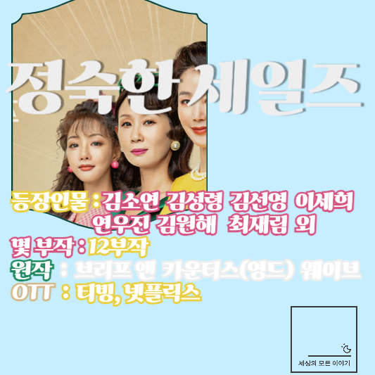 10월 12일에 첫 방송된 JTBC 금,토 드라마  '정숙한 세일즈' 보셨나요? '정숙한 세일즈'는 성인용품 판매가 금지된 1990년대를 배경으로 성인용품 방문 판매에 나선 여성들을 중심으로 펼쳐지는 유쾌한 이야기인데요 이번 포스팅에서는 '정숙한 세일즈' 주요 등장인물, 몇 부작, 원작, OTT 정보 정리해 드리겠습니다.