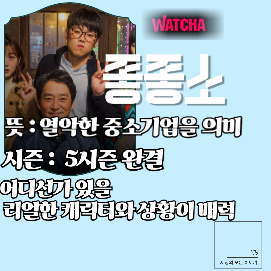 '좋좋소'라고 들어 보셨나요? '좋좋소'는 OTT 왓챠에서 스트리밍하고 있는 오리지날 시리즈인데요 흔히 '좋소'라고 하는 중소기업을 배경으로 하는 '리얼 드라마'입니다. 이번 포스팅에서는 '좋좋소'의 뜻과 시즌은 몇인지 또 주요 등장인물들은 어떤 캐릭터인지 간단하게 정리해 드리겠습니다.