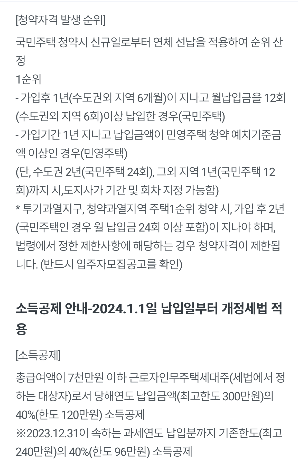 청약통장은 주택청약자격을 주는 것 외에도 소득공제 혜택이 있습니다. 연 소득이 7천만 원 이하이며 무주택자인 근로자가 한 해 청약저축에 납입한 금액 최대 300만원의 40%(120만원)를 소득에서 공제해주어 세금을 덜 낼 수 있게 해줍니다