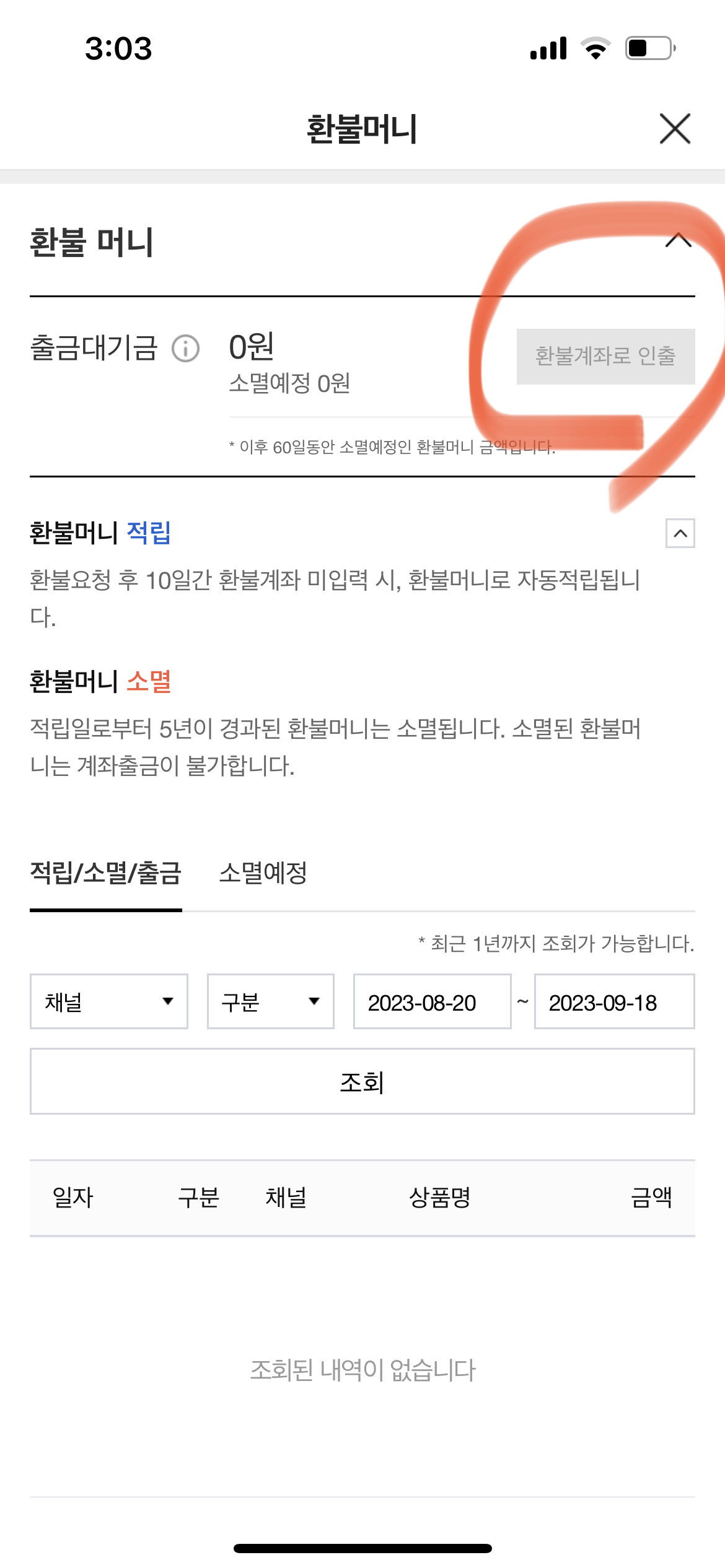 만약 조회했는데 환불머니가 보이시면 주저하지 마시고 환불계좌로 인출을 선택하시면 됩니다.