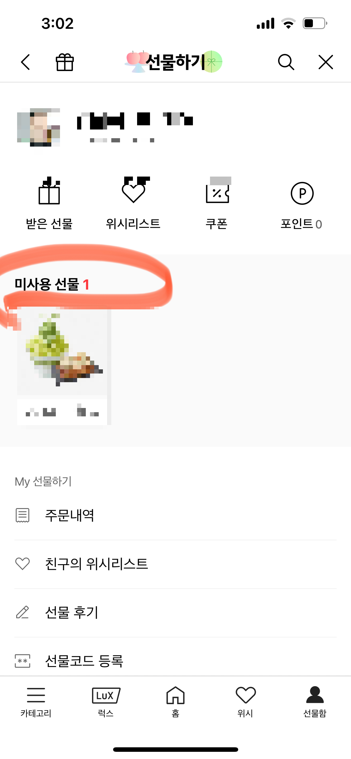 그러면 위 오른쪽 사진처럼 MY 선물함이 보이고 받은 기프티콘 중 아직 사용하지 않은 기프티콘도 확인할 수 있습니다