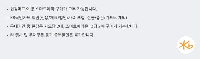 국민카드를 소지하신 고객은 누구나 할인 받을 수 있습니다. 골드2(7월 22일 ~ 8월 15일)기준 45% 할인된 43,400원으로 이용하실 수 있고 골드1(8월16일~20일)에는 50%할인된 가격(39,500원)으로 이용 가능하십니다. 기간은 ~8월 27일(방문일 기준)까지 입니다.