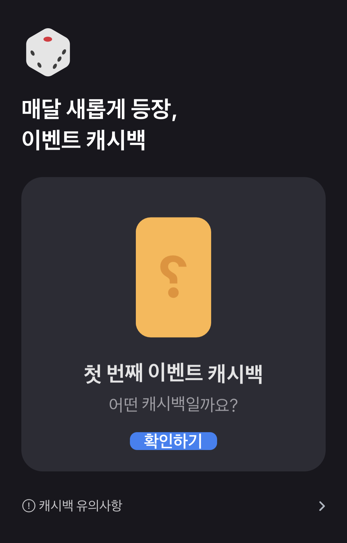 *캐시백은 종류별로 하루에 한 번 받을 수 있습니다.