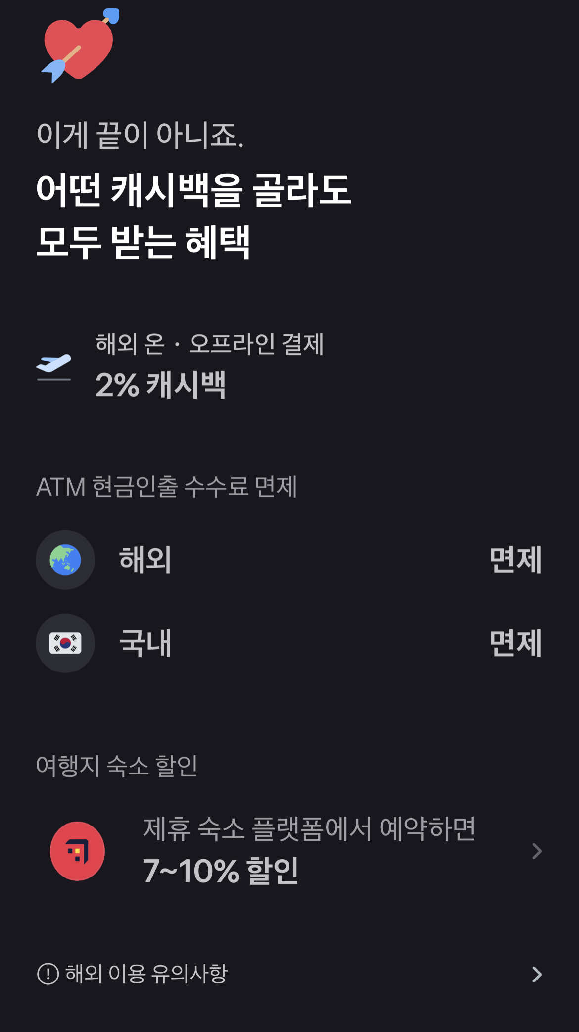 앞서 말씀 드린 해외 온.오프라인 결제 2% 캐시백을 비롯하여 토스와 제휴를 맺은 숙소 플랫폼에서 여행 예약을 하시면 할인 혜택 받을 수 있습니다.