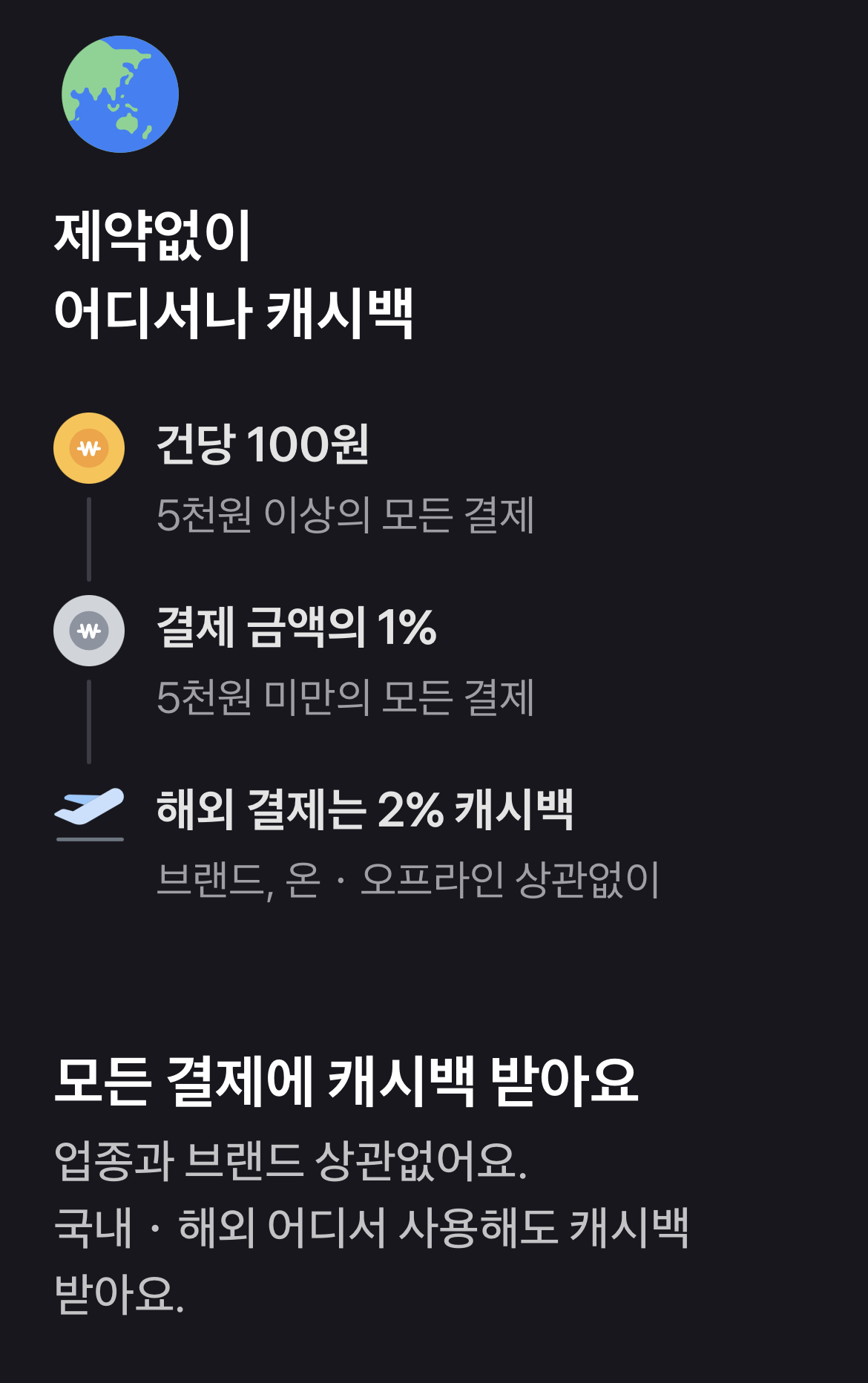 캐시백 종류와 상관없는 공통 혜택