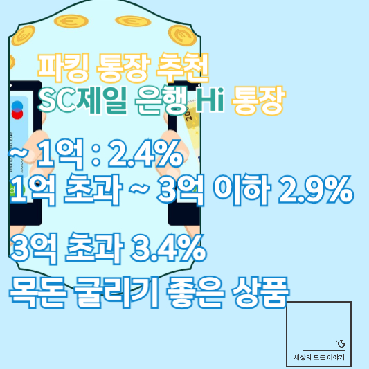 SC 제일은행에서 판매하고 있는 파킹통장은 Hi라는 상품입니다. 이 상품은 최소 2.4%에서 최대 4%까지 이자를 제공하고 있습니다. 이자 적용은 맡기시는 금액에 따라 다르게 적용되는데요 예치 금액에 따른 금리는 아래와 같습니다.