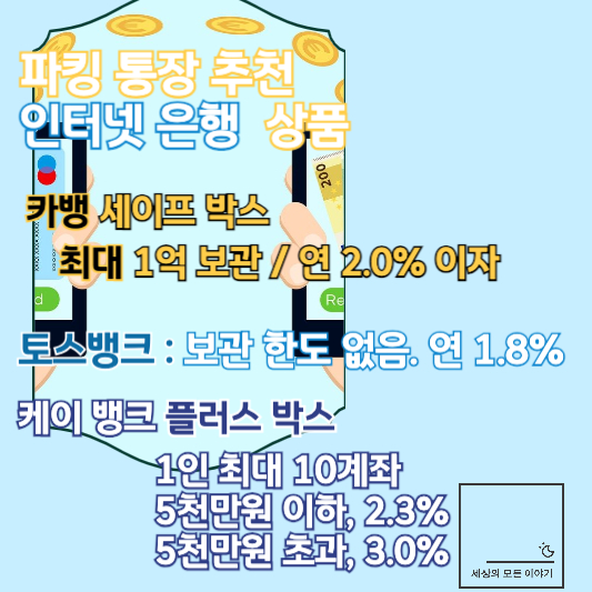 요즘에는 시중 은행 및 저축 은행, 인터넷 은행할 것 없이 파킹통장 상품을 내놓고 고객들의 단기 자금 유치 경쟁을 하고 있습니다. 따라서 어떤 파킹통장 상품이 유리한지 비교해보고 계좌 개설하시는 것이 좋겠습니다.