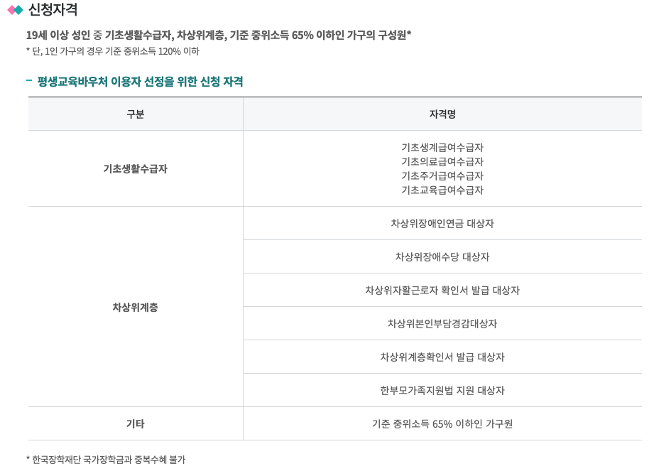 평생교육 바우처 신청 자격