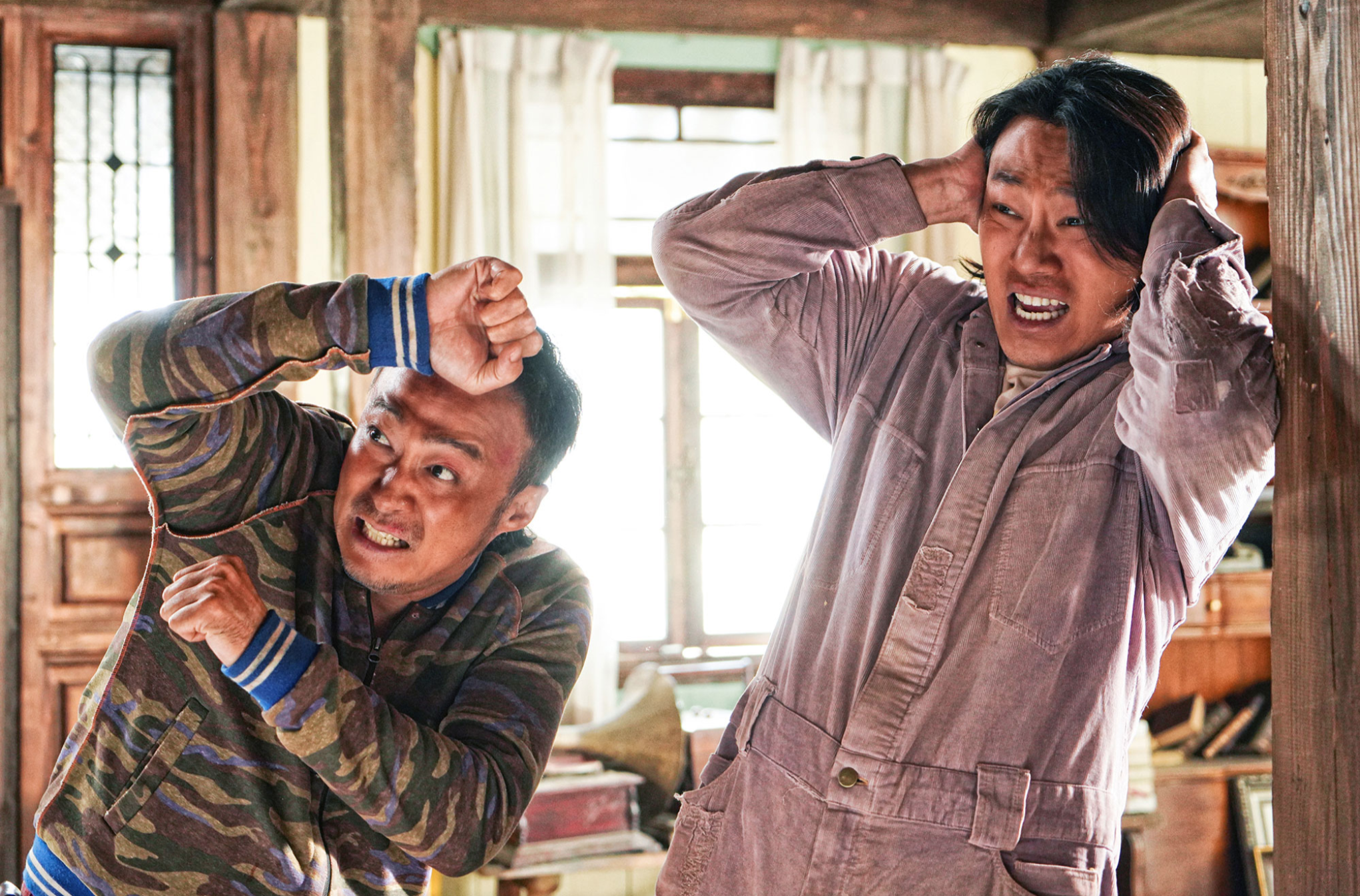 하지만 그런 장면들이 (순간 놀라게 할 수 있지만) 무섭지는 않습니다. 황당하고 어이없고 그래서 오히려 앞서 깔아 놓은 웃음을 이어가게 만듭니다. '핸섬 가이즈'는 그런 영화입니다. 우리가 흔히 말하는 B급 정서로 무장한 그래서 영화 속 상황을 받아 들이고 즐길 준비만 된다면 근심 걱정 다 내려 놓고 원초적 반응으로 낄낄될 수 있는 영화말입니다. (예고편 보러가기)
