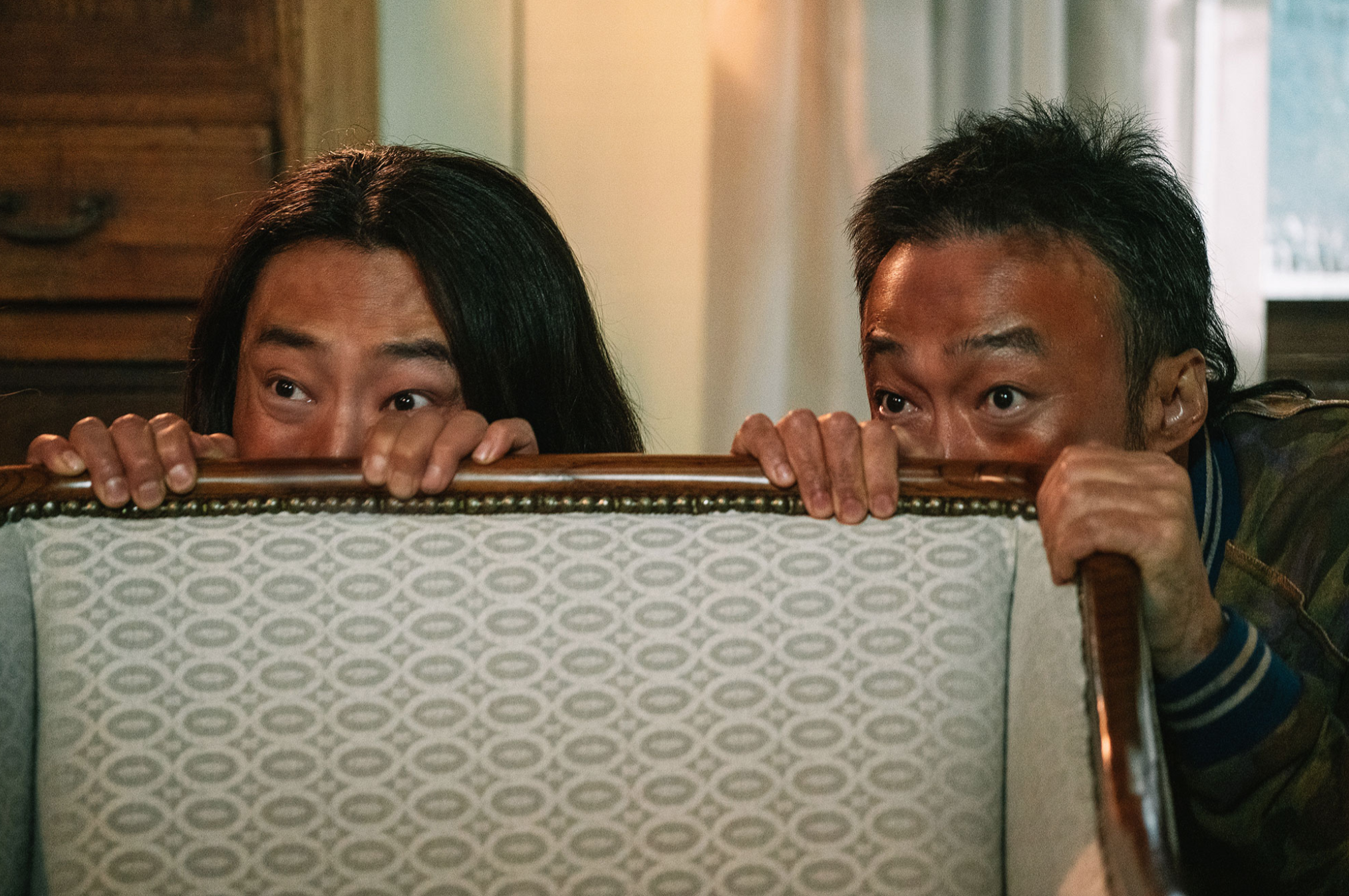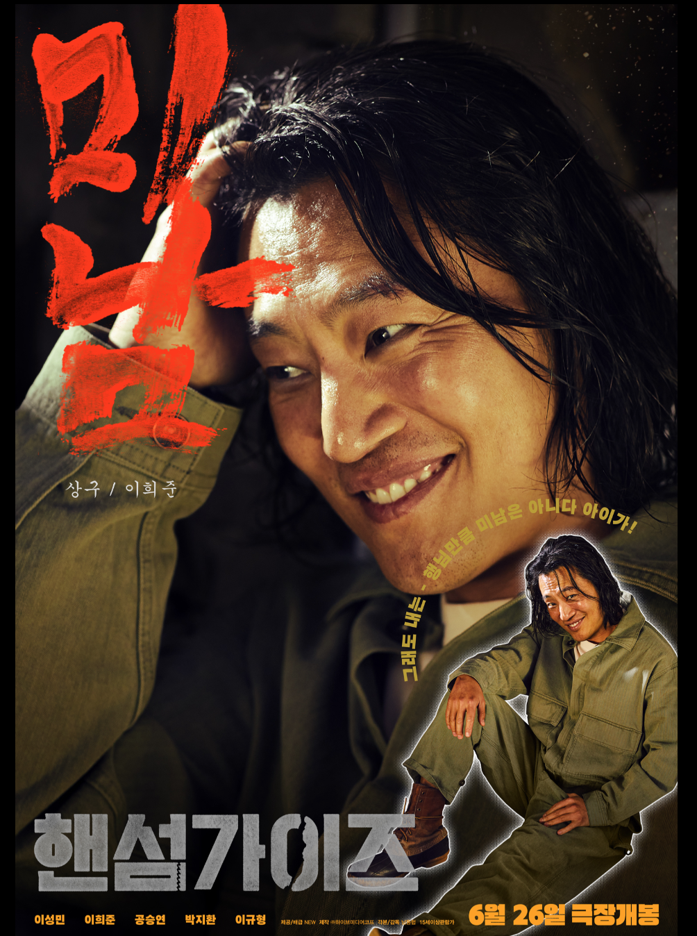 하지만 그런 장면들이 (순간 놀라게 할 수 있지만) 무섭지는 않습니다. 황당하고 어이없고 그래서 오히려 앞서 깔아 놓은 웃음을 이어가게 만듭니다. '핸섬 가이즈'는 그런 영화입니다. 우리가 흔히 말하는 B급 정서로 무장한 그래서 영화 속 상황을 받아 들이고 즐길 준비만 된다면 근심 걱정 다 내려 놓고 원초적 반응으로 낄낄될 수 있는 영화말입니다. (예고편 보러가기)