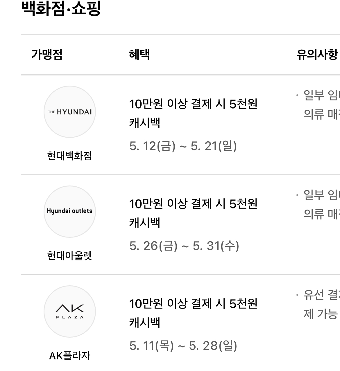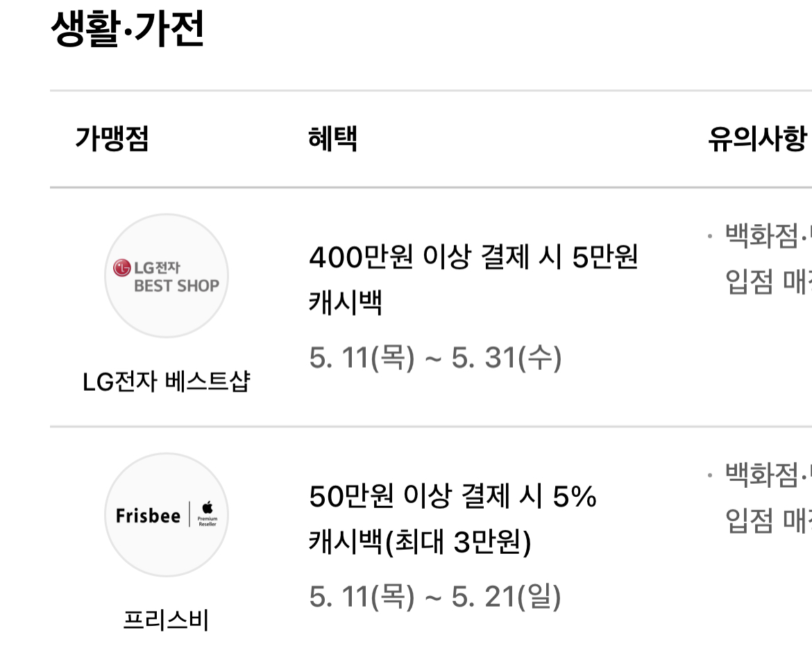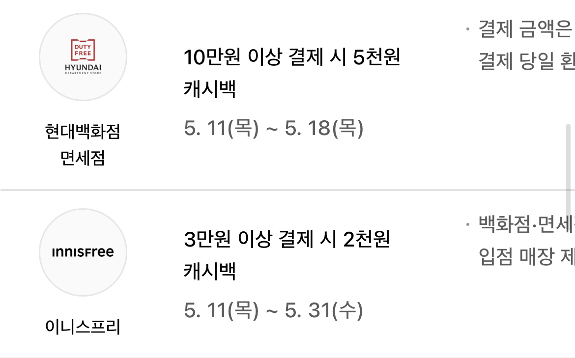 이벤트 적용이 안 되는 매장 등도 있으니 쇼핑 전에 유의사항 확인 바랍니다.
