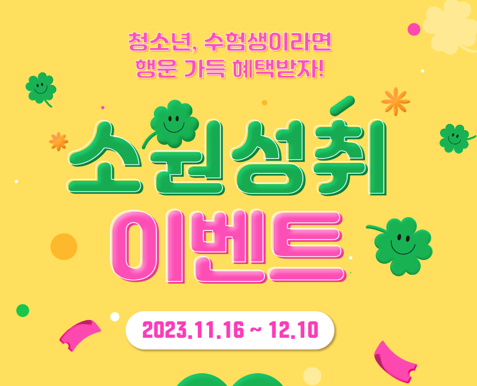 또 과외 어플 '콴다'회원이라면 받을 수 있는 혜택도 있습니다. 기간은 11월 13일 ~ 12월 17일까지로 콴다 회원이면서 수험생이면(청소년) 종일권을 29,900원에 이용할 수 있습니다.