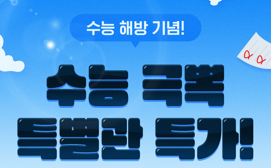 수능이 끝난 그 해방감, 그동안 쌓인 스트레스를 시원하게 날려 버릴 곳으로 놀이공원만한 곳도 없을 겁니다. 롯데월드, 에버랜드, 서울랜드 가실 때 수험표 들고 가시면 할인 혜택 누리실 수 있습니다.
