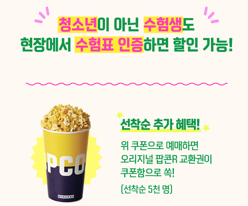 메가박스에서도 수험생 및 청소년을 대상으로 할인 이벤트를 진행합니다.