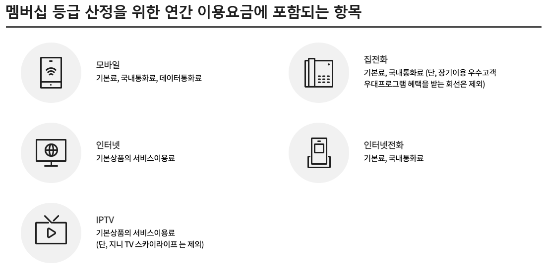 KT는 등급에 따라 멤버십 포인트를 지급하고