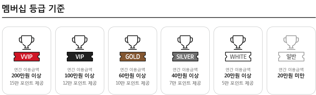 VVIP VIP GOLD SILVER WHITE 일반으로 등급을 나눕니다.