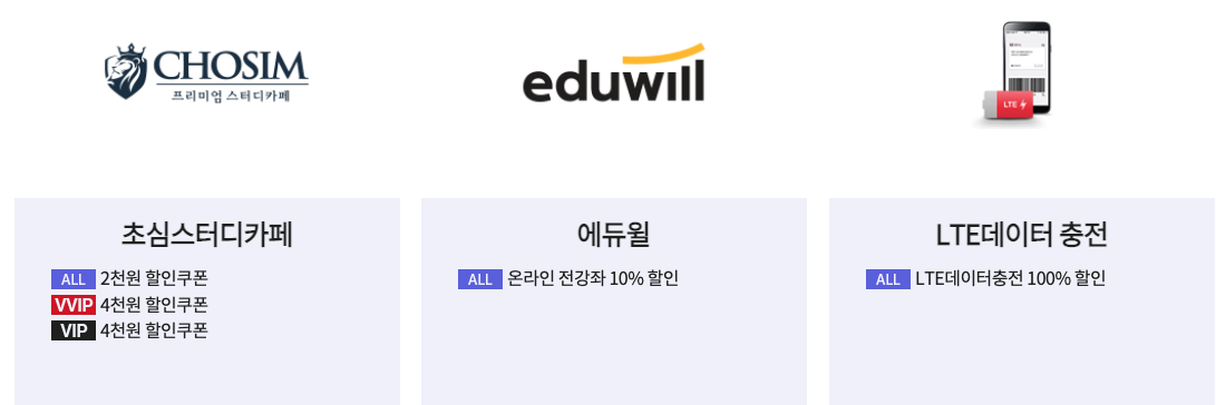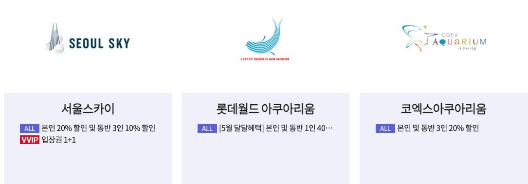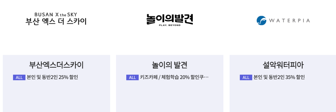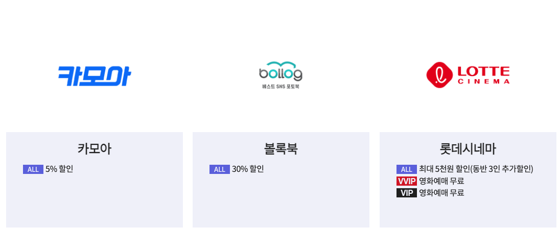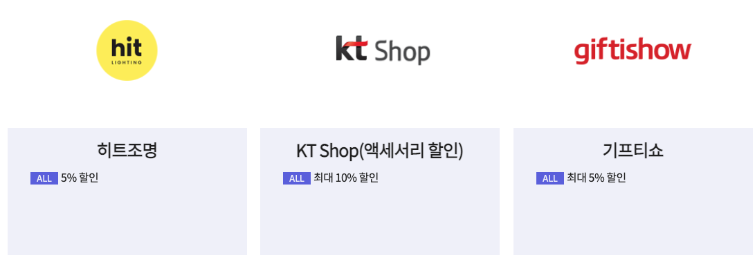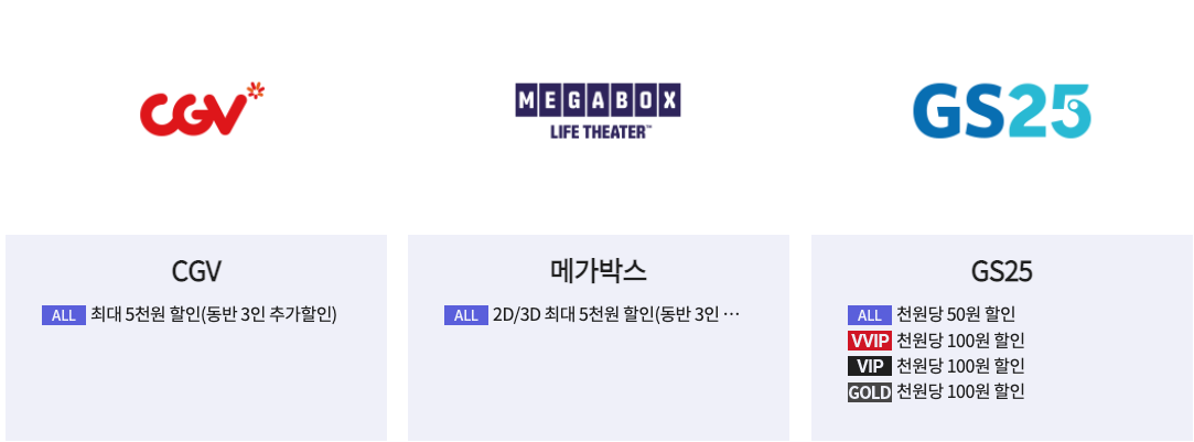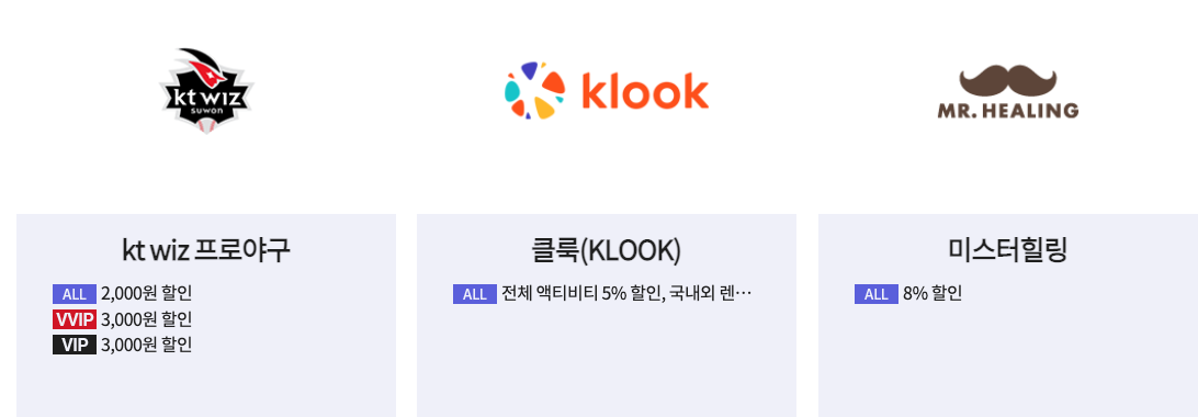 그 밖에 KT 위즈 프로야구 할인이나 키자니아 할인도 있습니다.