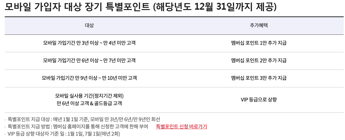 가입기간에 따라 장기 특별 포인트를 제공 받을 수 있습니다.