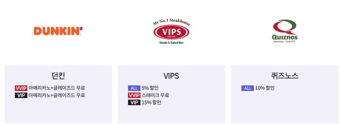 주요 제휴 서비스 혜택은 VVIP와 VIP 등급에 집중되어 있습니다.