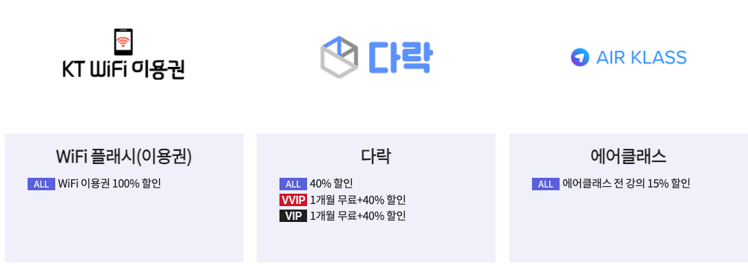 KT멤버십이라면 할인된 가격으로 이용하실 수 있습니다.
