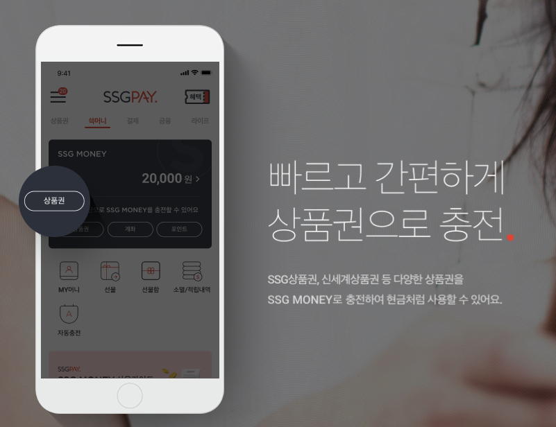 SSG페이의 가장 큰 장점은 바로 신세계 상품권으로 금액만큼 충전, 현금처럼 사용할 수 있다는 점인데요 방법은 아주 간단합니다.