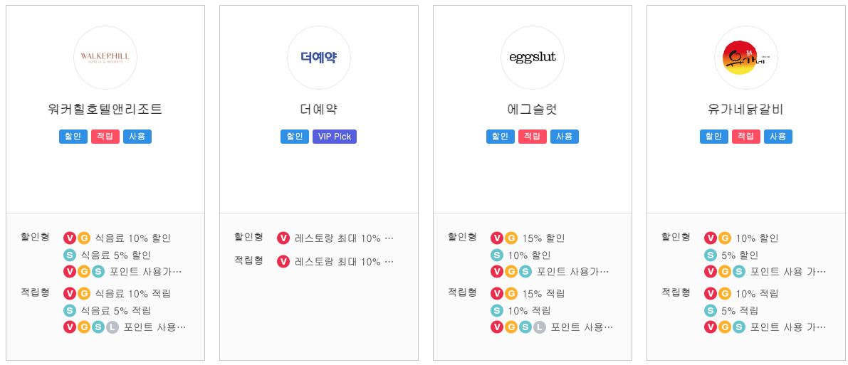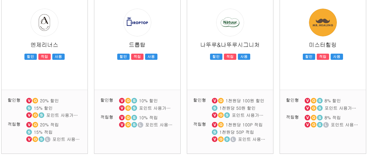 역시 제휴사 마다 할인 적립 율이나 혜택 내용의 차이가 있습니다.