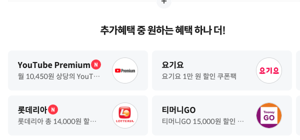 추가혜택은 다음 중 하나 선택할 수 있는데요