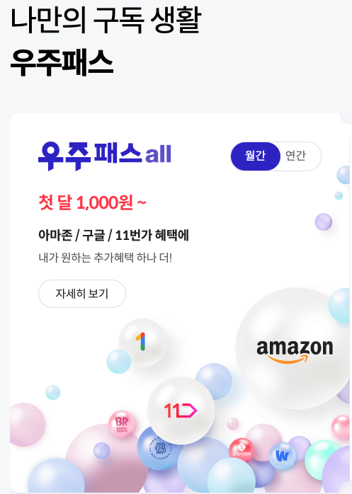 또 최근엔 우주패스 플러스라는 구독서비스가 더해졌는데요