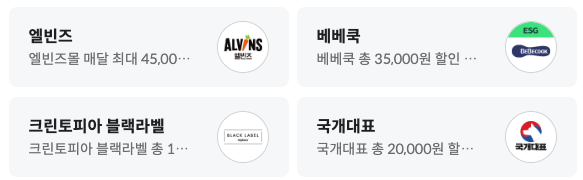 음식(베베쿡 등) 세탁(그린토피아) 쇼핑 건강(현대백화점, 홈플러스 동국제약)