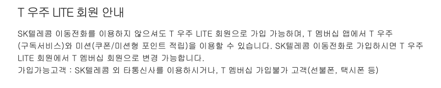T우주 LITE 회원 가입하고 우주패스 혜택 누리실 수 있습니다.
